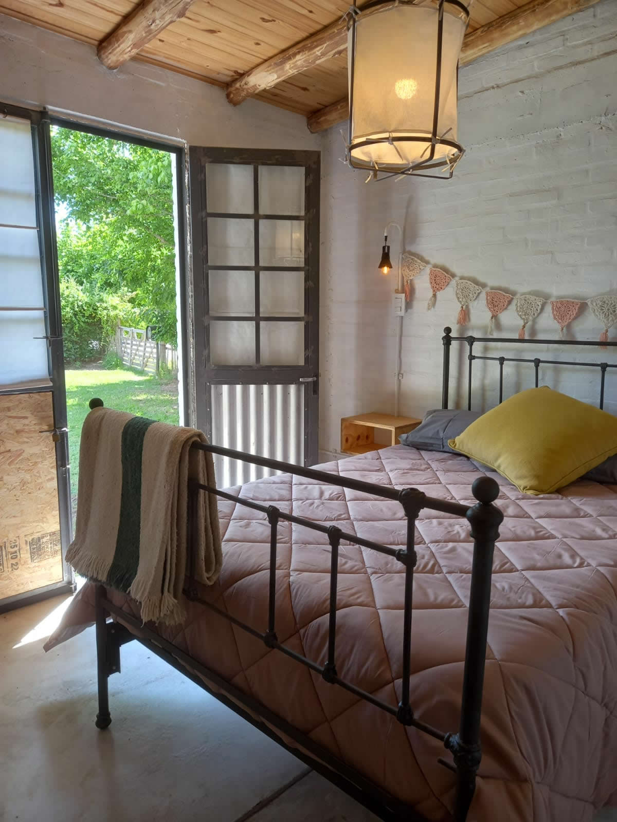 Pequeña y confortable casita con amplio espacio verde solo para el visitante, con entrada totalmente independiente. Acceso de vehículo y cochera protegida.